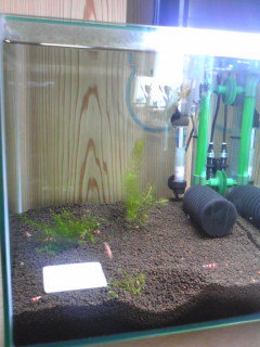 45cmキューブ水槽からサイズダウンの30cmキューブ水槽で混泳水槽。その水槽にはレッドビーシュリンプが居ましたが…全滅。壊滅。なので、今回は新たに「レッドビー専用水槽」を立ち上げ。